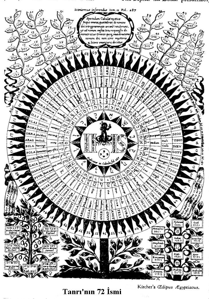 75. Şimdi İlahiyat kavramlarına biraz irdeleyelim. Isaac Myer şöyle yazar: Tanrı dört açıdan görülebilir: Ebedi Olan veya AIN SOPh, Ain Soph; Ben Benim AHIH, Aheie; önceden, şimdiden ve sonra Ezeli Varolan IHVH, Jehovah, Yahweh; ve Adonai veya Efendi, Doğadaki Tanrı ALHIM, Elohim olarak.